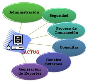 Maneja una base de datos de clientes relacionados con cada uno de los servicios disponibles, cuentas asociadas, plásticos y claves de acceso (Pines).